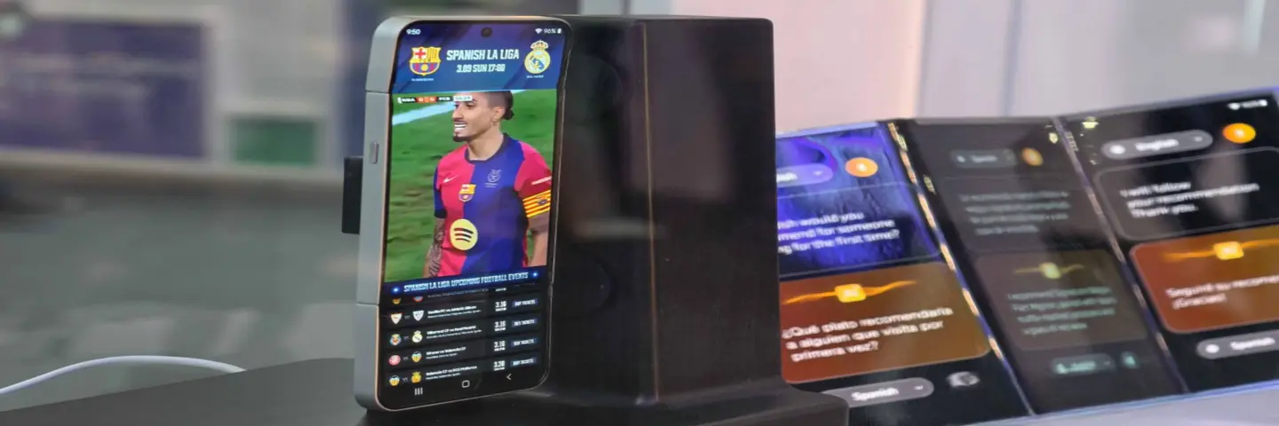 در کنار این محصول، سامسونگ یک کنسول بازی دستی تاشو را نیز در MWC 2025 به نمایش گذاشته که به نظر کاربردیتر از مدل Asymmetric Flip میرسد. طراحی آن شباهت زیادی به نینتندو سوییچ دارد اما یک لولای تاشو در وسط نمایشگرش تعبیه شده که امکان تا شدن کنسول را فراهم میکند. همچنین، جویاستیکهای کنسول بهگونهای طراحی شدهاند که هنگام بستهشدن درون پدهای دایرهای مخصوص خود قرار بگیرند.