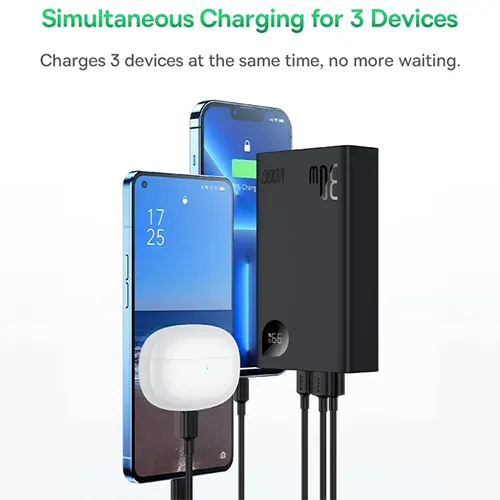 پاوربانک همچنین با سازگاری گسترده خود متمایز است. می توانید به راحتی از آن برای تجدید انرژی در گوشی های هوشمند هوآوی ، اپل ، اوپو یا شیائومی استفاده کنید. شما می توانید با موفقیت از آن برای تغذیه تبلت ها ، لپ تاپ ها یا هدفون های بی سیم استفاده کنید. دیگر لازم نیست نگران نباشید که انرژی پاوربانک در زمان کم به اتمام برسد ، همانطور که گفته شد ظرفیت آن 20000 میلی آمپر ساعت می باشد. این پاوربانک برای شارژ تلفن هوشمند شما حداقل چندین بار کافی است. به عنوان مثال ، با کمک آن می توانید آیفون ۱۳ را تا ۴ بار یا شیائومی ۱۲ را تا ۳ بار شارژ کنید. علاوه بر این ، شارژ خود پاوربانک زمان زیادی نمی برد. بعد از حدود ۳ الی۴ ساعت دوباره آماده استفاده خواهد بود. برای تهیه پاوربانک باسئوس مدل Adaman2 PPAD050001 با ظرفیت 20000 میلی آمپر ساعت با قیمتی مناسب و خیالی راحت می توانید از سایت کارت خریداری کنید.