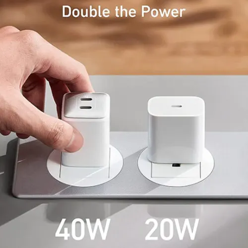 شارژر دیواری دو پورت انکر مدل A2038 ، وزنی حدود 85 گرم و در ابعادی جمع و جور طراحی شده است. به دلیل وزن کم و ابعاد کوچک حمل آن بسیار آسان بوده و حین جا به جایی در کیف نیز فضای کمی را اشغال می کند. سری این شارژر به صورت دو شاخه طراحی شده و نیازی به استفاده از تبدیل نیست. کلگی این شارژر بسیار کوچک بوده و حتی کوچک تر از شارژر های 20 وات طراحی شده است. روی بدنه این شارژر دو پورت USB-C تعبیه شده ، بنابر این به وسیله آن می توانید به صورت هم زمان دو دستگاه را شارژ کنید.