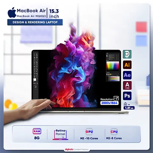 لپ تاپ اپل 15 اینچی مدل MacBook Air 15 MQK V3 M2 8GB 512GB یکی از لپ تاپ های محبوب و جذاب برند اپل است که با طراحی زیبا و سخت افزار قدرتمند ، توجه کاربران را به خود جلب کرده است. مک بوک ایر از سری لپ تاپ های فوق نازک این شرکت است که در رده لپ تاپ های قابل حمل قرار دارد و بیشترین کاربرد آن در انجام کارهای روزانه می باشد. اگرچه این لپ تاپ ها علاوه بر کاربری روزمره برای پردازش های نسبتا سنگین هم استفاده می شوند. اگر قصد خرید یک لپ تاپ با کیفیت و کار آمد را دارید می توانید در نقد و بررسی لپ تاپ اپل 15 اینچی مدل Macbook Air با ما همراه باشد.