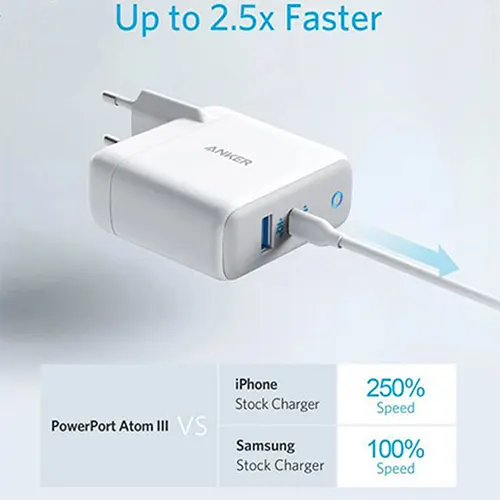 شارژر انکر مدل A2322L21 ، از تولیدات این کمپانی است که سازگاری وسیعی با انوع دستگاهها دارد. شارژر دیواری 60 واتی انکر مدل Anker PowerPort Atom III A2322 در سری PowerPort Atom III گنجانده شده است.